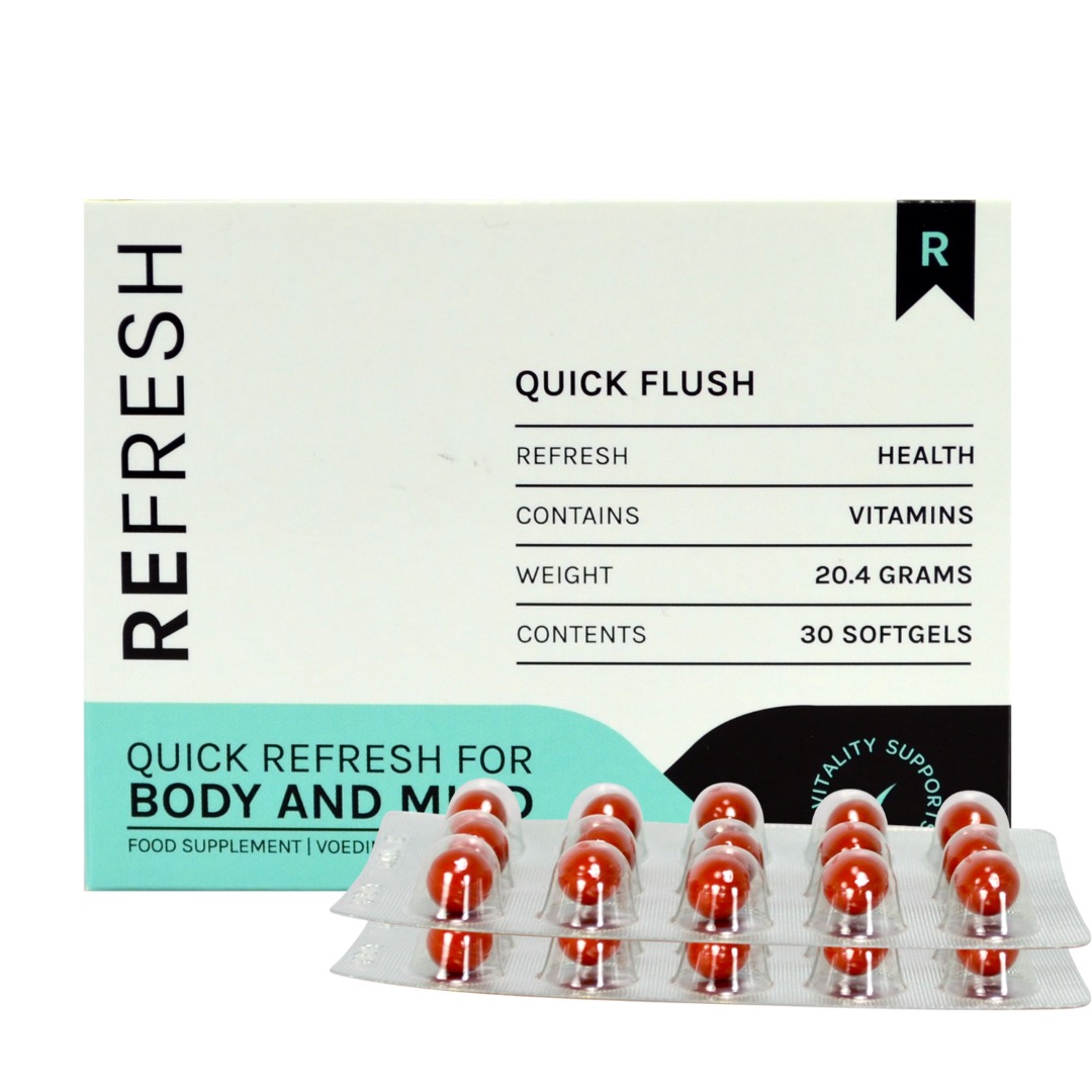 ReFresh Quick Flush is dé oplossing voor iedereen die op zoek is naar een natuurlijke en effectieve manier om lichaam en geest te zuiveren. Deze unieke formule zit boordevol essentiële vitamines die niet alleen je lichaam helpen reinigen, maar ook bijdragen aan een verhoogde weerstand en een energiek gevoel. Of je nu een hectische periode achter de rug hebt of gewoon behoefte hebt aan een frisse start, ReFresh Quick Flush ondersteunt je bij elke stap.